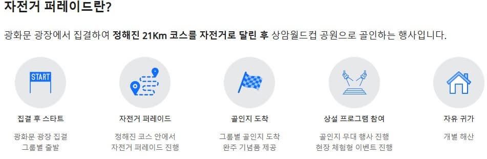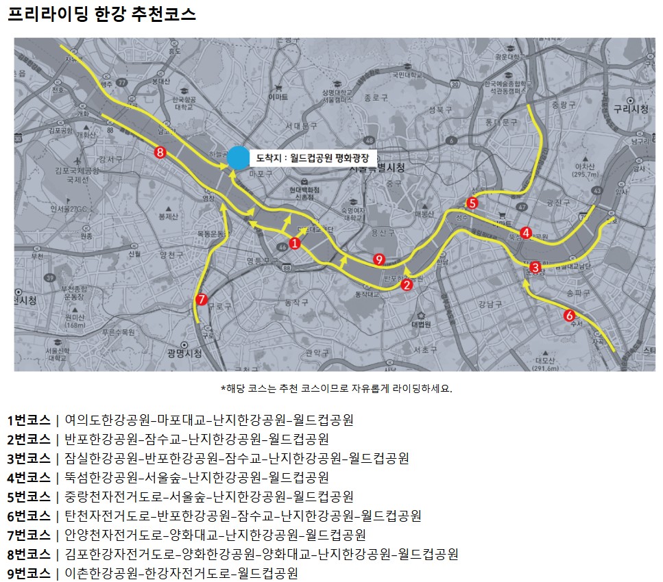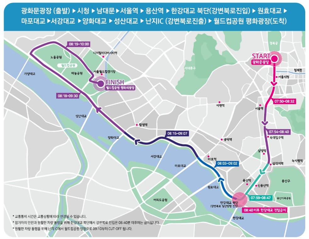 - 장소: 광화문광장(출발) → 강변북로 → 월드컵공원 평화광장(도착)
