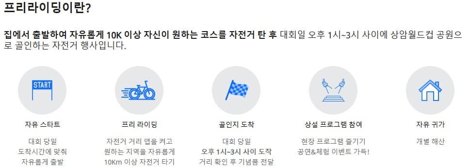 - 주의 사항: 참가자는 반드시 헬멧을 착용해야 하며, 개인 자전거의 안전 상태를 사전에 점검해야 합니다.